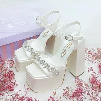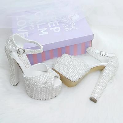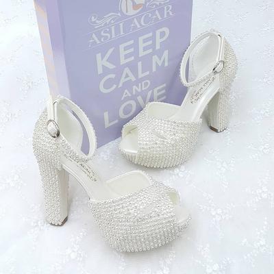 16 Cm Thick Heeled Very Comfortable Pearl Color Bridal Shoes